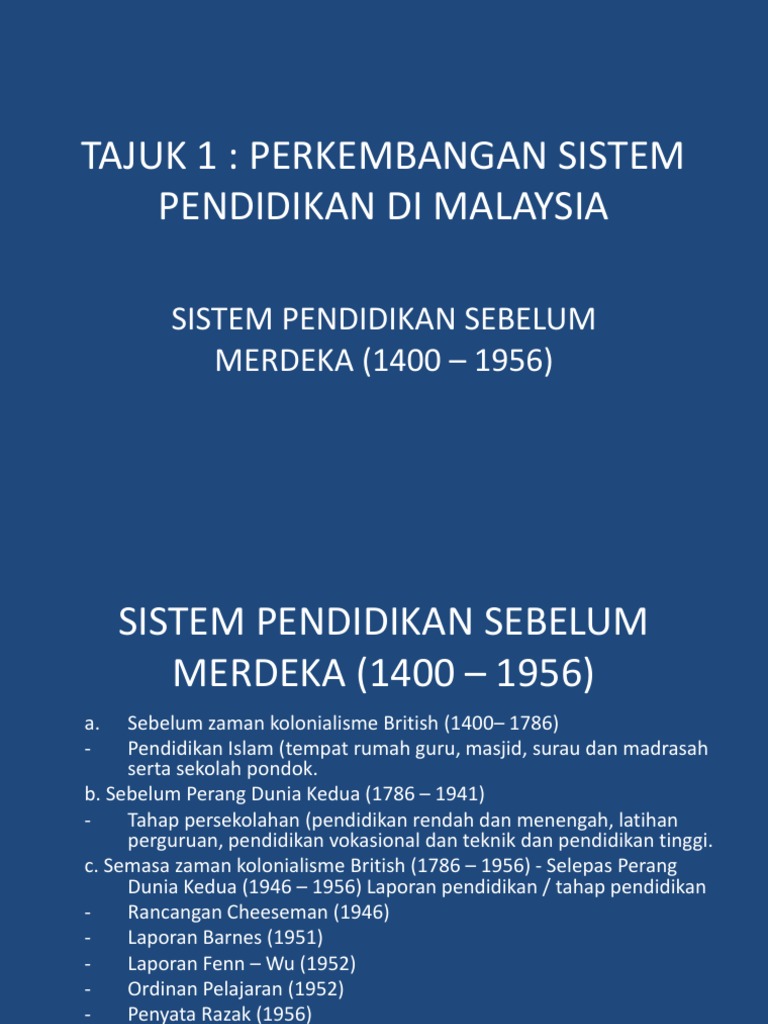 Bab 1 Perkembangan Sistem Pendidikan Di Malaysia Sebelum Merdeka Pdf