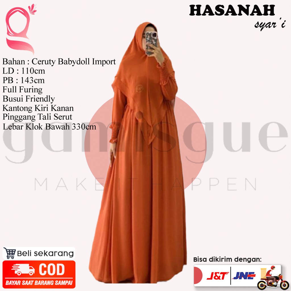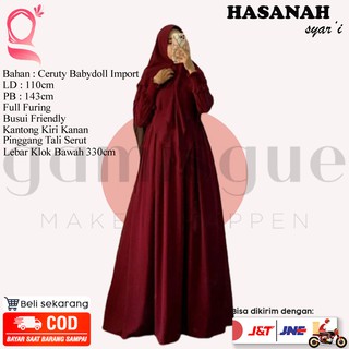 Jual Hasanah Merah Bata Dress Muslim Wanita Gamis Polos Ceruty Premium Syari Set Hijab Murah Terbaru Shopee Indonesia