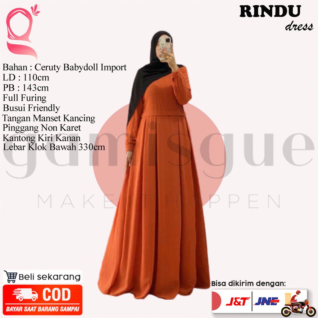 Jual Rindu Merah Bata Dress Muslim Baju Pakaian Wanita Gamis Polos Ceruty Premium Pesta Murah Terbaru Shopee Indonesia
