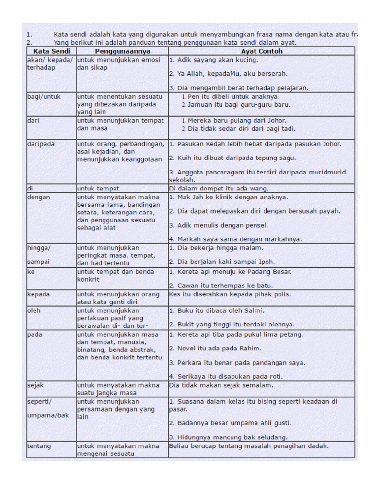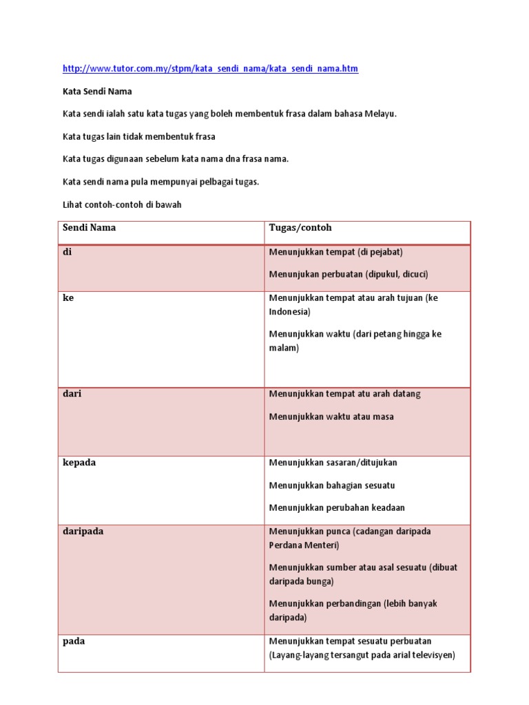 Tatabahasa Kata Sendi Nama Tahun Satu Kata Sendi Adalah Kata Yang Digunakan Untuk Menyambungkan Studocu